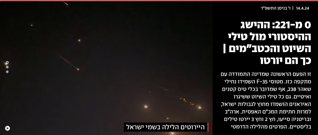 G. Întreaga lume a văzut „puterea iraniană”. Un stat terorist care timp de ani de zile a amenințat Israelul cu parade nord-coreene a eșuat în fața națiunii startup atacate. Sistemele de apărare ale Israelului au dat o lecție atacului terorist iranian, un stat al terorii ale cărui esențe sunt frica și intimidarea. Din momentul în care și-a folosit capacitățile, acestea au fost epuizate. În bătălia conștiinței – Israelul este puternic, Iranul este slab. Iranul este agresiv, iar Israelul mic se apără cu succes. În fața acestor realizări, dacă Israelul atacă din ofensivă, ar putea să-și piardă sprijinul internațional pe care l-a primit.