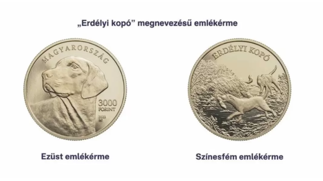 Banca Națională a Ungariei va emite o monedă comemorativă din metale neferoase cu o valoare nominală de 3 000 HUF (7,7 EUR), denumită „Câinele din Transilvania” („Erdélyi kopó”), cu ocazia Zilei Mondiale a Animalelor, 4 octombrie 2023.