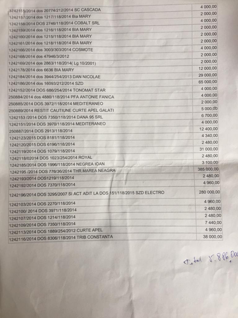 - Contractul de asistenţă juridica seria B, nr. 250863/08.10.2014, onorariul stabilit la valoarea de 465.000 lei plus TVA;