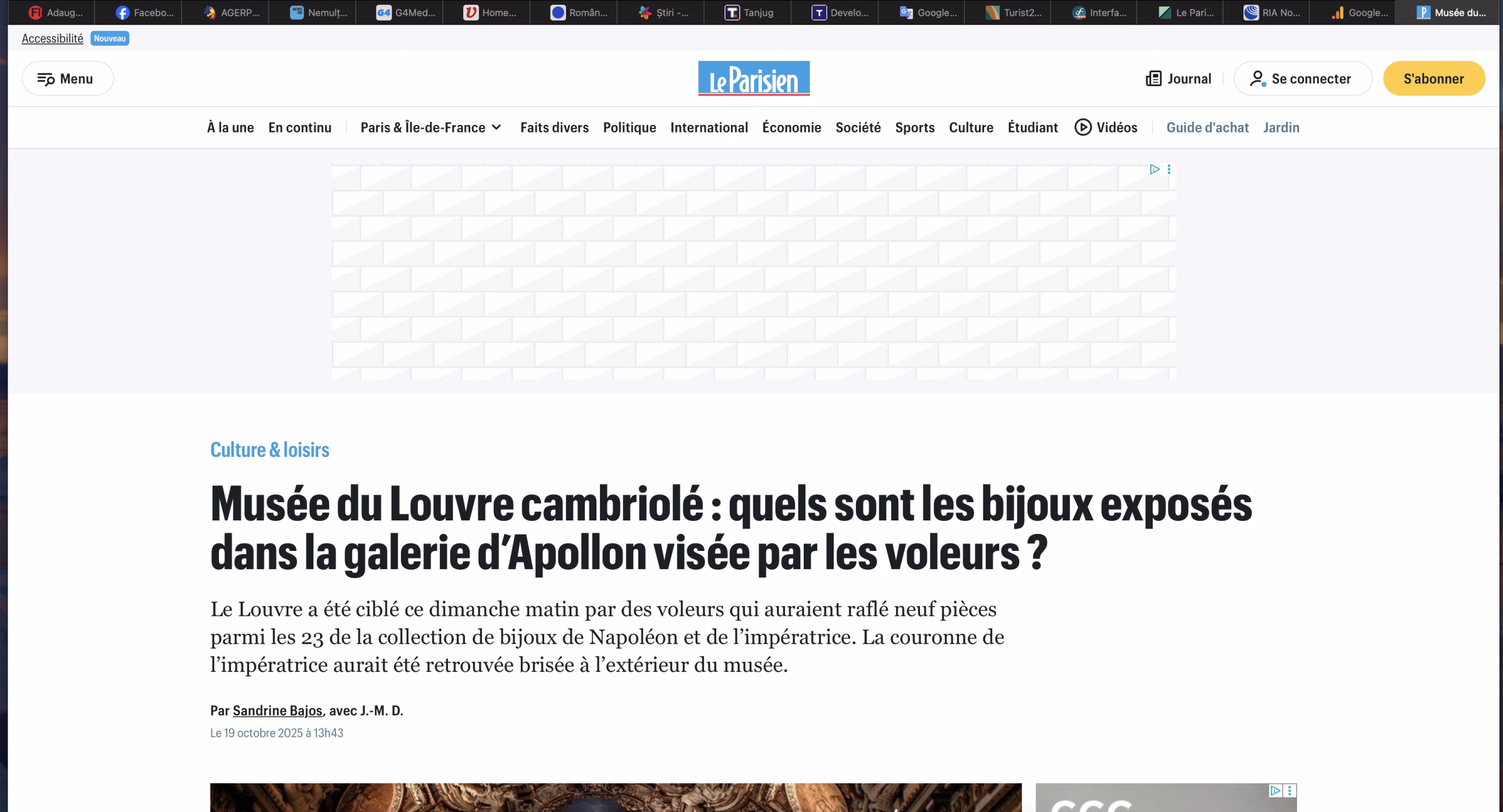 În timpul unui jaf la Muzeul Luvru din Paris, bijuterii din colecția lui Napoleon și a împărătesei Iosefina, inclusiv un colier, o broșă și o tiară, au fost furate, relatează ziarul Le Parisien.