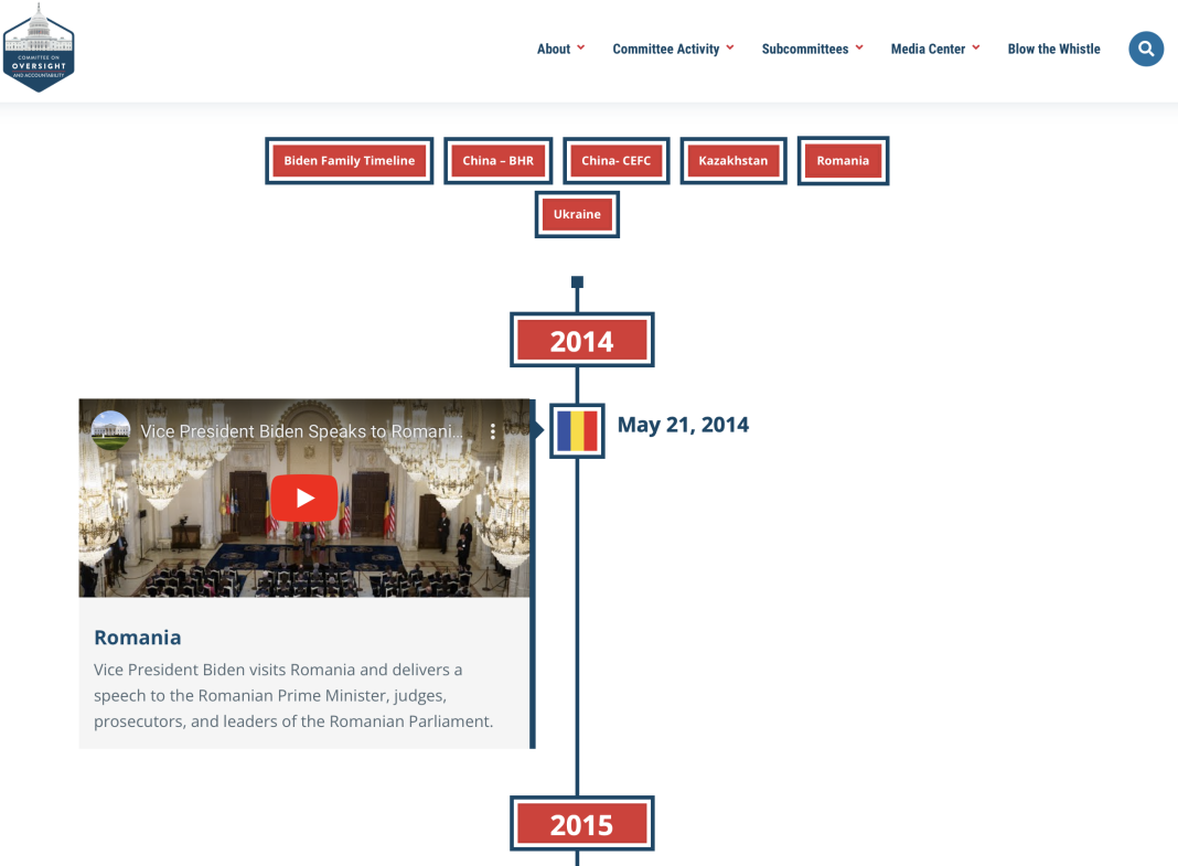 Comisia de supraveghere din Camera Reprezentanților a dat publicității un raport-cronologie despre afacerile familiei președintelui Joe Biden, inclusiv România.