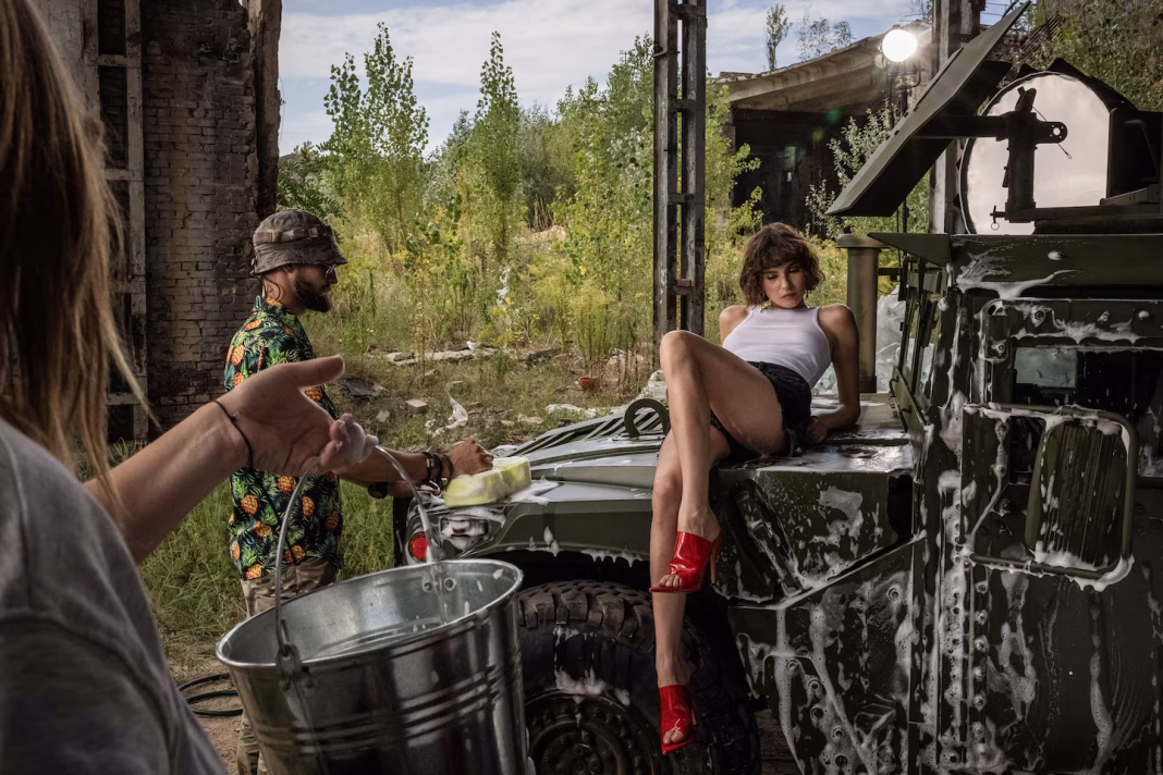 Ziarul a arătat o fotografie de la o ședință foto organizată de brigada a 3-a ucraineană de asalt cu participarea personalului militar și a unui model de 25 de ani, pe nume Maria, la sfârșitul lunii august. În fotografie, fata stă pe capota unui Humvee purtând un crop top, pantaloni scurți și stiletto roșii în timp ce pozează în timp ce picioarele îi sunt acoperite de spumă.