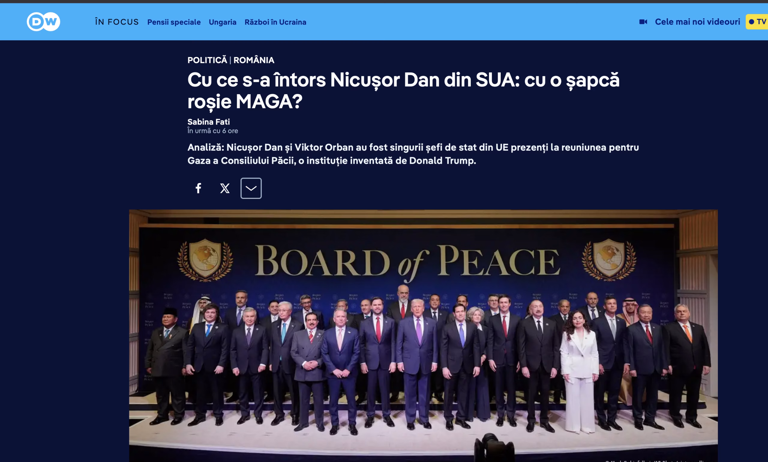 De ce a defilat România chiar cu președintele, fără ca diplomații români să-i poată rezerva lui Nicușor Dan măcar o discuție cu Donald Trump în picioare? Oare cei care l-au sfătuit pe șeful statului român să accepte invitația lui Trump nu știau că ceilalți europeni vor fi reprezentați de oficiali cu ranguri mai mici? Sau, poate, au crezut că acest soi de exercițiu de umilință e necesar pentru obținerea vizitei la care visează Nicușor Dan? Poate așa România e reconsiderată pentru programul visa waiver? Președintele a explicat că a mers la Washington fiindcă evenimentul a fost „o inițiativă a Partenerului nostru Strategic”, dar și anexarea Groenlandei era tot o inițiativă a partenerului strategic, la fel creșterea taxelor pentru UE sau sprijinul pentru Rusia în negocierile de pace cu Ucraina. România trebuie să aplaude ce face SUA, chiar și atunci când deraiază? Nicușor Dan putea să-și trimită la Washington un consilier care să recite cele două minute de discurs în care a spus că România poate crește numărul zborurilor de evacuare a copiilor bolnavi din Fâșia Gaza, pentru ca aceștia să fie tratați în spitalele din România, ceea ce deja se întâmplă: „Putem face acest lucru pentru 1.000 de copii și 4.000 de membri de familie”, mai spune DW.