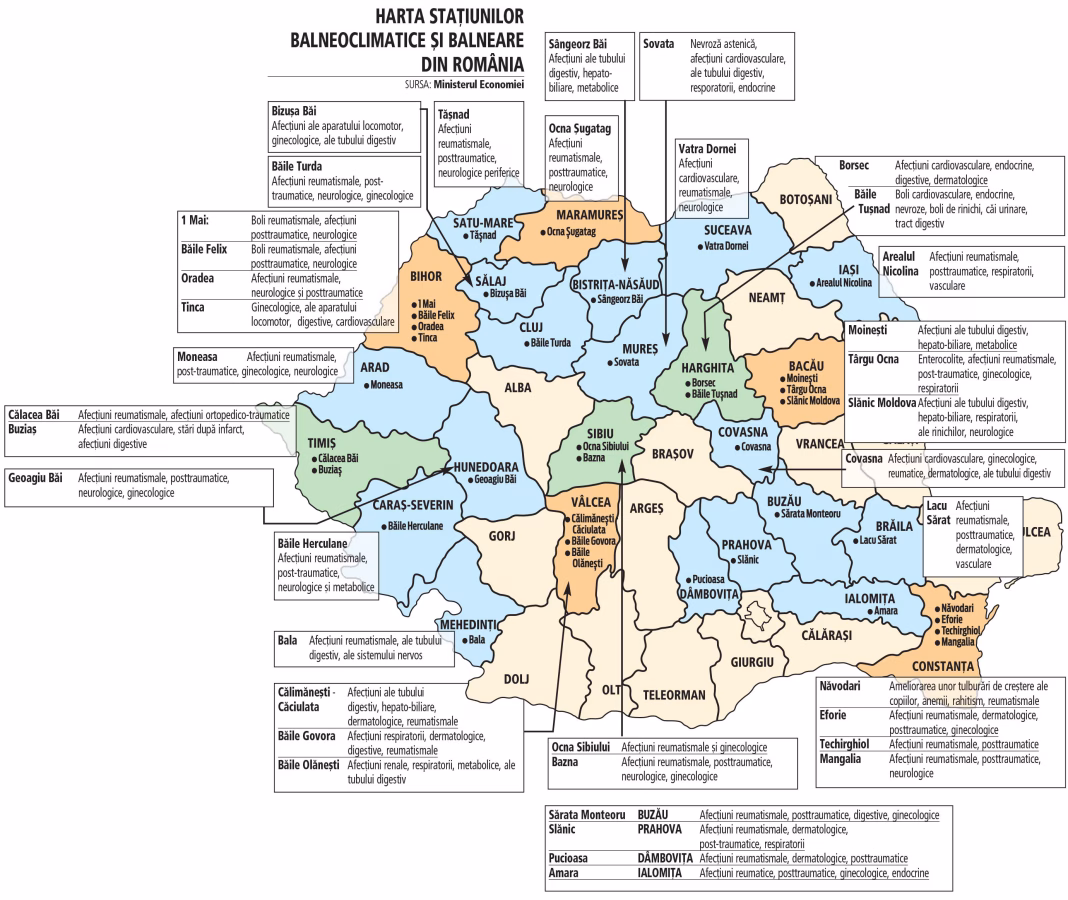 Peste 160 de localităţi din România dispun de factori naturali terapeutici, însă doar 38 dintre acestea au fost declarate staţiuni balneare sau balneoclimatice. Astfel, doar 24% dintre aceste localităţi sunt considerate staţiuni, scrie ZF.