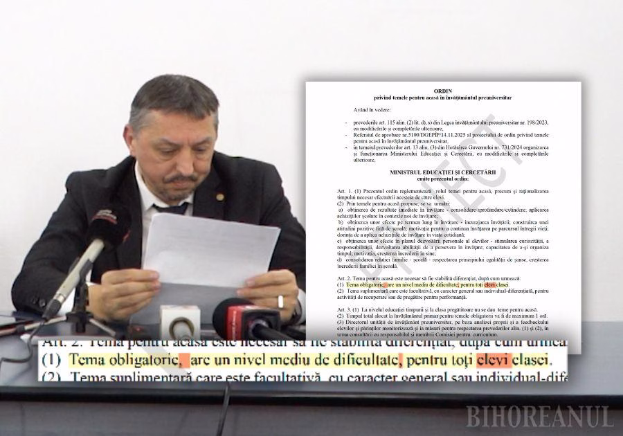 Publicat pe 19 noiembrie, pe site-ul Ministerului Educației, proiectul de ordin privind temele de acasă are doar 14 articole, întinse pe nici trei pagini, dar totuși a ieșit în lume cu greșeli de gramatică și ortografie care nu sunt permise nici măcar elevilor de vârstă mică, transmite Bihoreanul.