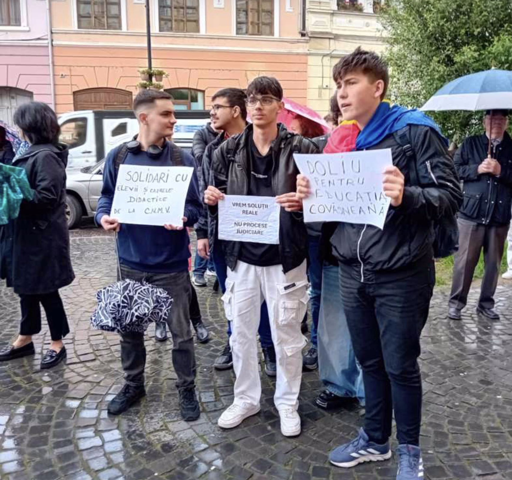 ‘Viteazul nu se lasă’, ‘Fapte nu vorbe’, ‘Vrem condiții funcționale, nu promisiuni municipale’, ‘Vă bateți joc de noi, românii sunt e locul 2’, ‘La vecini s-a pus faianța, la noi…doar speranța’, ‘Doliu pentru educația covăsneană’, ‘Investiți în educație, nu în procese’,’Copiii de azi, viitorul de mâine’,’Vrem condiții decente pentru a învăța’ – au fost mesajele pe care elevii, părinții și dascălii de la Colegiul ‘Mihai Viteazul’ din Sfântu Gheorghe le-au transmis, vineri, autorităților locale.