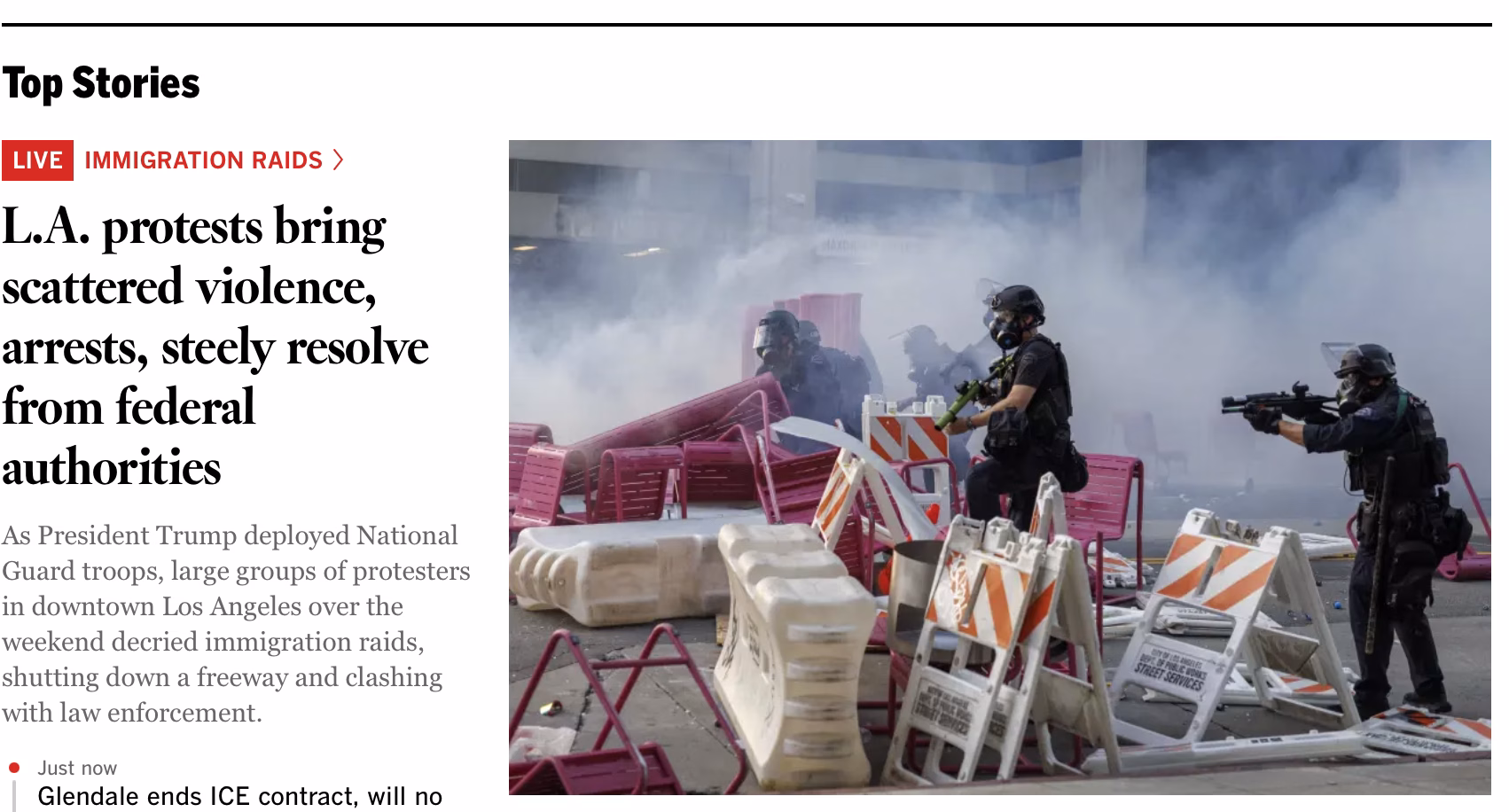 - Pe 6 iunie, au început reținerile în masă ale migranților ilegali în Los Angeles.