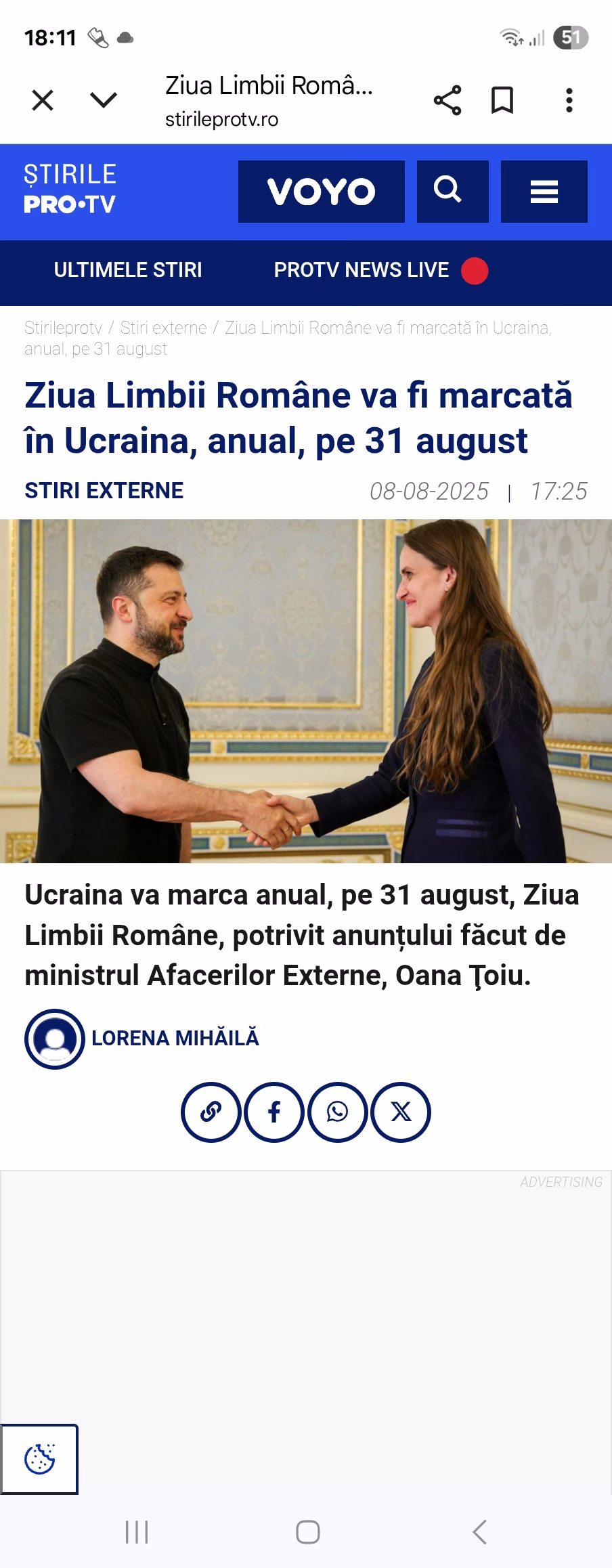 Înainte de vizita doamnei Oana Țoiu în Ucraina, o agenție de presă a publicat o informație – de autenticitatea căreia mă îndoiesc – potrivit căreia Guvernul Ucrainei intenționează să instituie oficial Ziua Limbii Române la data de 31 august. Era scris că Ucraina ar urma să proclame ziua de 31 august 2025 drept Ziua Limbii Române pentru românii din Ucraina. Se vorbea, așadar, despre o intenție. Deoarece toată viața am lucrat în domeniul învățământului, am decis să caut informații care să confirme cele apărute pe internet, dar nu am găsit nimic.