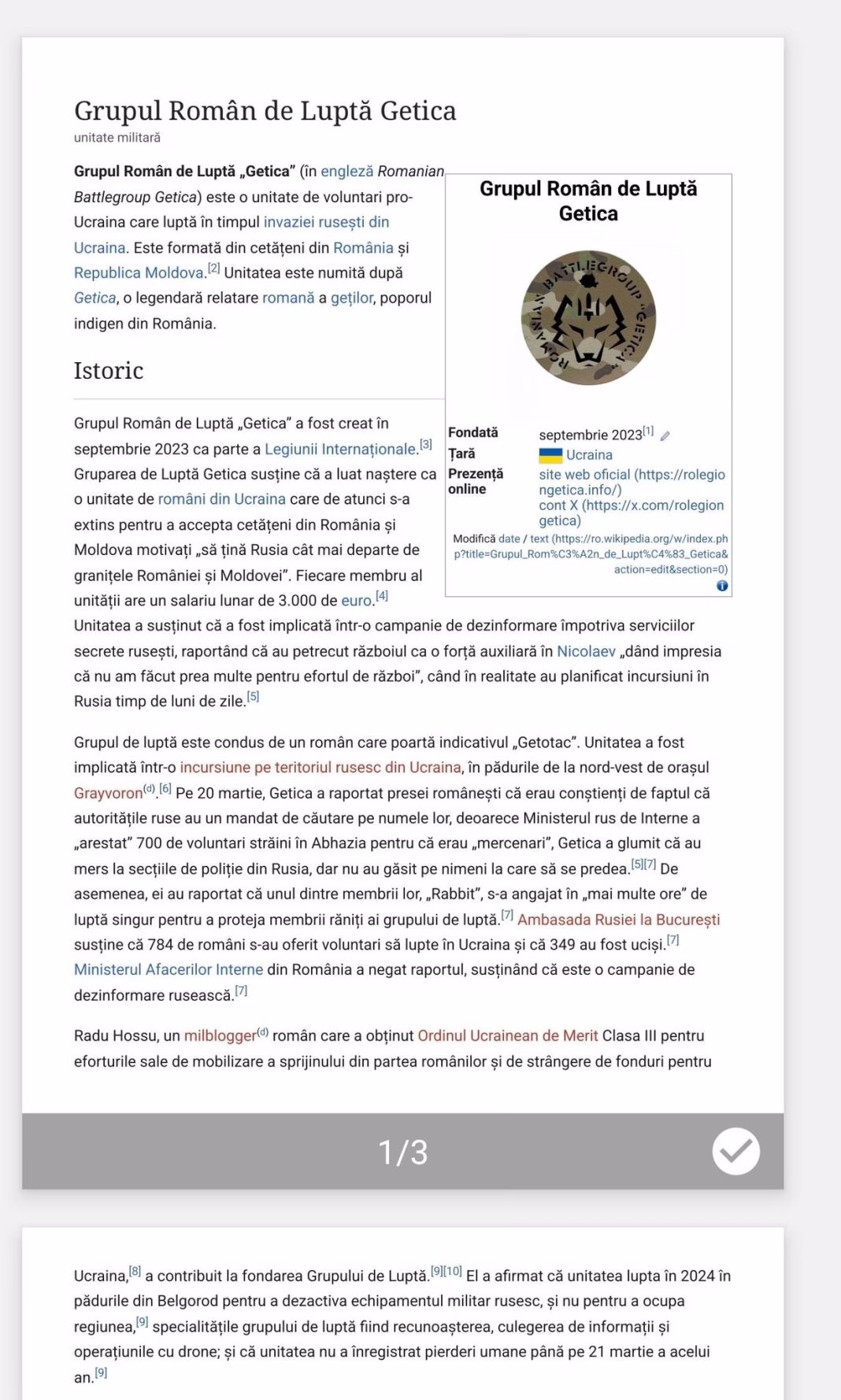 Rusia susține că „așa-numitul grup de luptă Getica”, format din voluntari din România și Republica Moldova care sprijină armata ucraineană, atacă cu drone trupele ruse