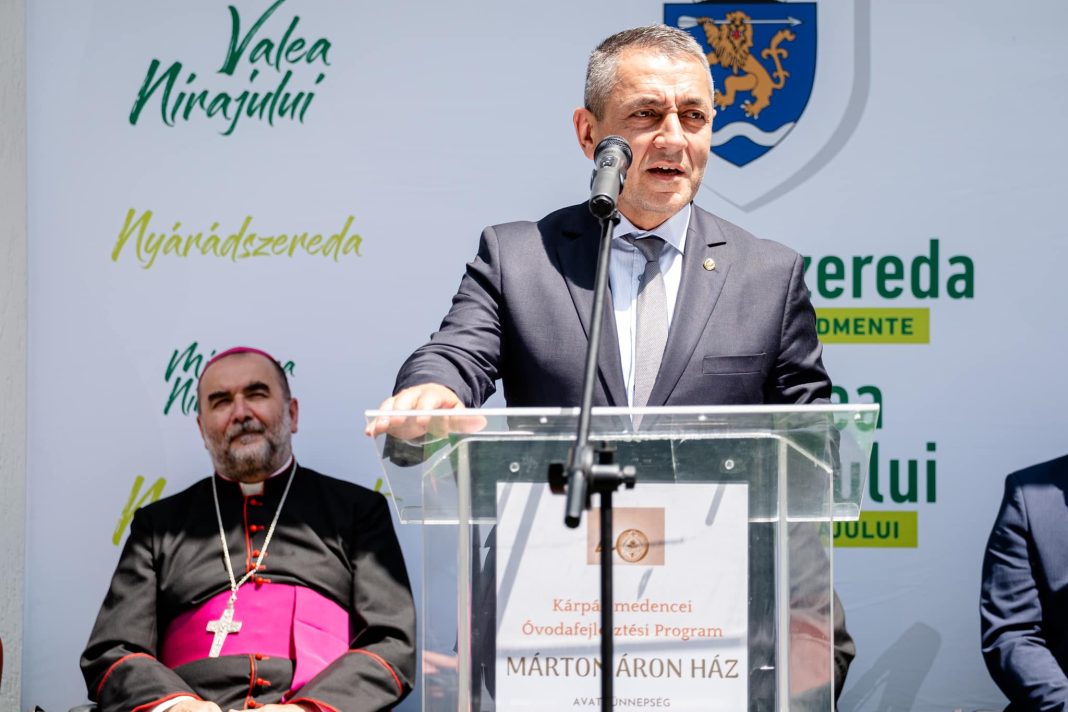 Piatra de temelie a Casei “Márton Áron” a fost pusă în februarie 2019, iar Centrul a fost ridicat în curtea bisericii romano-catolice din Miercurea Nirajului, cu o finanţare din partea statului ungar în valoare de 205 milioane de forinţi (peste 510 000 euro) şi a fost inaugurată sâmbătă. Imobilul are două săli pentru activităţi, două dormitoare, o cameră medicală, o bucătărie şi o baie, astfel fiind create condiţiile moderne pentru educaţia şi îngrijirea copiilor preşcolari.