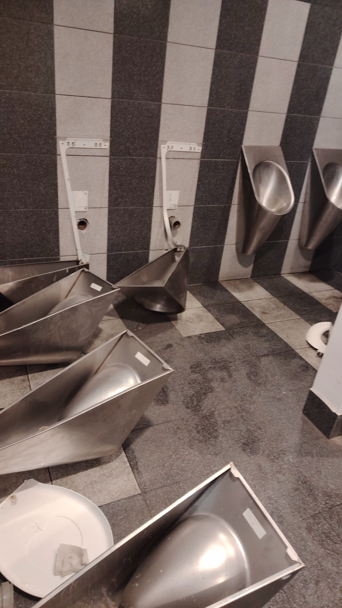 Imagini revoltătoare au fost surprinse după derby-ul dintre Universitatea Cluj și CFR Cluj.U-iștii îi acuză pe suporterii CFR de vandalism.În imagini se observă că mai multe pisoare sunt rupte și smulse din perete, unele fiind aruncate pe jos și distruse. Ușile de la cabinele de toaletă sunt, de asemenea, rupte sau forțate, iar pe podea se pot vedea resturi de ceramică și bucăți din instalațiile sanitare. Practic, o parte din grupurile sanitare au fost devastate.